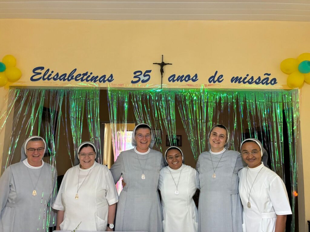 Com espírito de gratidão e comunhão, registramos nosso sincero agradecimento pela visita das Irmãs do Governo Geral ao Brasil, neste tempo tão significativo em que celebramos os 35 anos da missão elisabetina em nossas comunidades. Vossa presença fraterna, orientadora e de testemunho fiel foi para nós sinal de unidade, proximidade e renovação vocacional. Unidas na mesma fé e na mesma missão, seguimos com ânimo renovado, confiantes de que Deus continua a conduzir esta história escrita com amor, serviço e fidelidade iniciado por nossas Fundadoras.